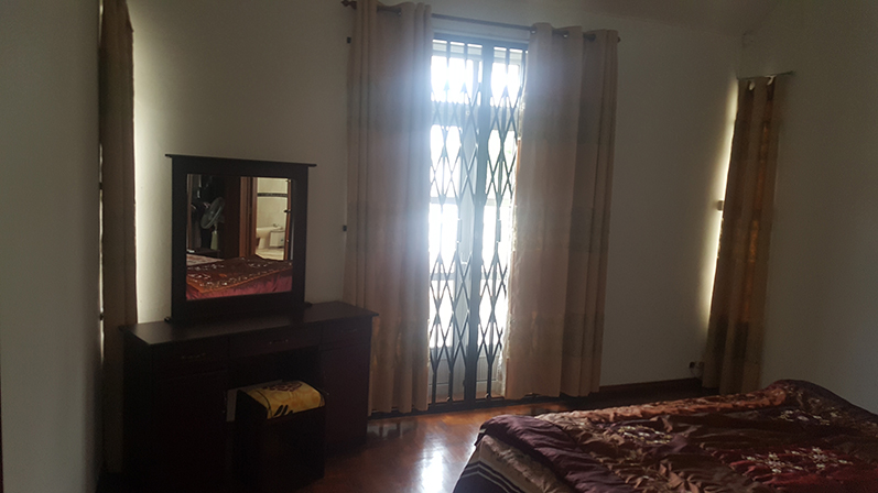 Upper floor: Master bedroom en suite with attached bathroom & toilet and a walking wardrobe, 3 additional bed rooms with a common bathroom & toilet, 1 out of the 3 bedrooms opens on the balcony with a beautiful view on the lawn at lower level.
